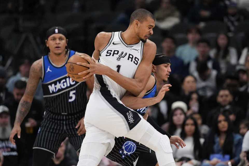 马刺:文班亚马25分8板2助4断5帽、瓦塞尔16分2板3助、哈珀15分6板5助、凯尔登14分10板1助、福克斯14分3板10助、尚帕尼11分8板。
